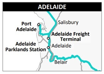 The Australian Rail Track Corporation running lines through Adelaide, including connection to Keswick terminal