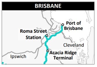 Dual gauge running lines from Dutton Park to Port of Brisbane.